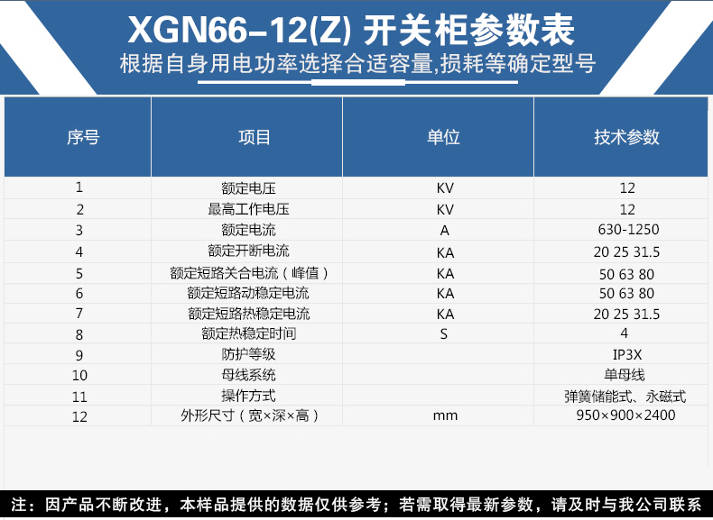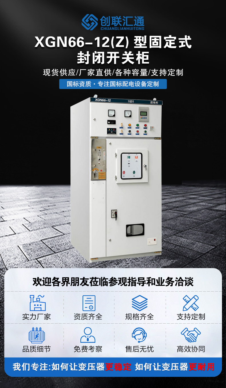 XGN66-12(Z)箱型固定式金屬封閉開關設備(簡稱開關柜)用于3、6、10kV三相交流50Hz系統中作為接受與分配電能之用。其母線系統為單母線(可派生出單母線帶旁路和雙母線)結構。