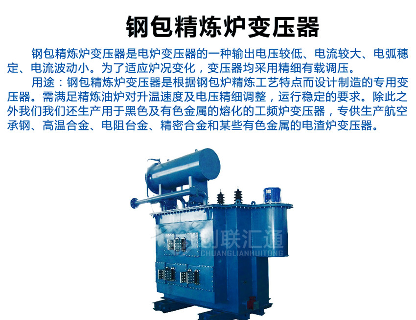 鋼包精煉爐變壓器是電爐變壓器的一種輸出電壓較低、電流較大、電弧穗定、電流波動小。為了適應爐況變化,變壓器均采用精細有載調壓。