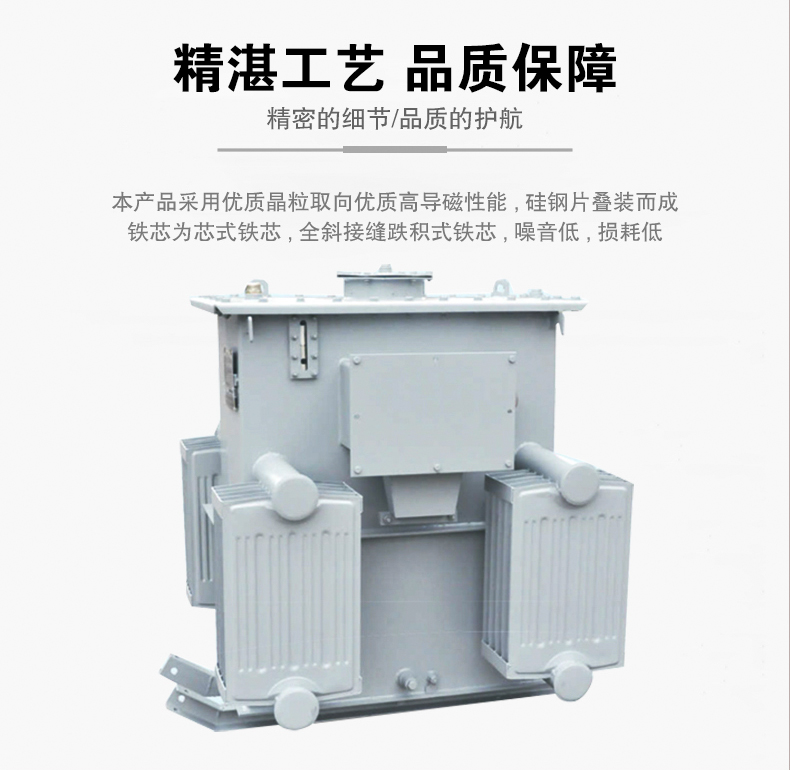 型接成693V或”D”型接成400V供電,在電纜接線盒內直接裝次級端頭引出六個瓷套供用戶改接變壓器吊裝利用焊在箱壁的吊攀,變壓器箱底均裝有拖撬,在拖撬上備有安裝孔,可供礦并需要時加裝礦車滾輪。