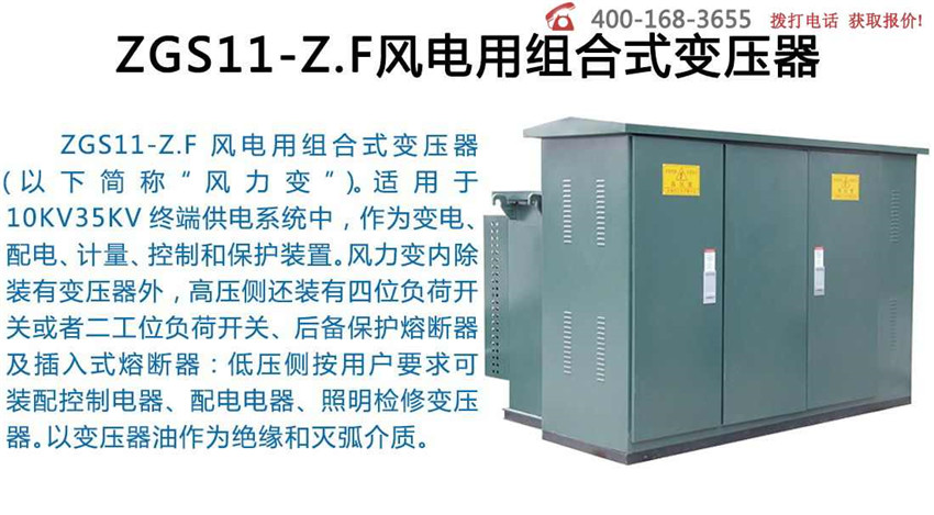 GS11-Z.F系列風力發電用組合式變壓器適用于35k V終端供電系統,作為變電、配電、計量、控制和保護裝 置。