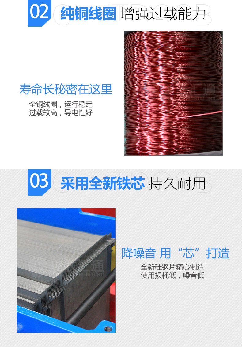 1.變壓器鐵芯采用進(jìn)口 冷軋硅鋼片疊積而成,大大降低空載和空載電流,并對鐵芯進(jìn)行綁扎,保證鐵芯的緊實(shí)度,降低噪音。