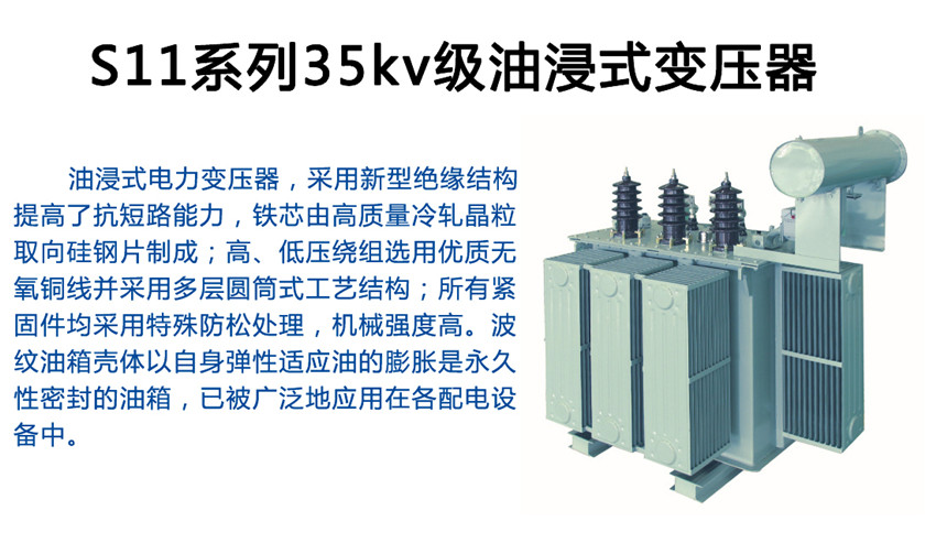 油浸式電力變壓器,采用新型絕緣結構,提高了抗短路能力,鐵芯由高質量冷軋晶粒取向硅鋼片制成;高、低壓繞組選用優質無氧銅線并采用多層圓筒式工藝結構;所有緊固件均采用特殊防松處理,機械強度高。波紋油箱殼體以自身彈性適應油的膨脹是永久性密封的油箱,已被廣泛地應用在各配電設備中。